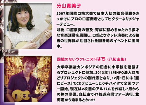 国際口笛大会で日本人初の総合優勝をはたした、口笛(とウクレレ)奏者の