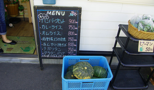 お店の出入り口では、店長さんの自家菜園でとれたという