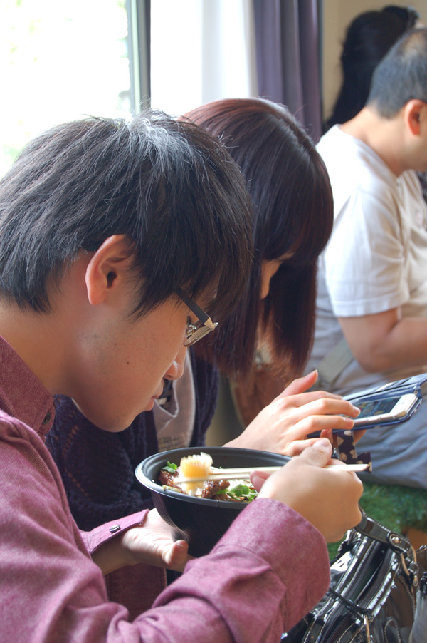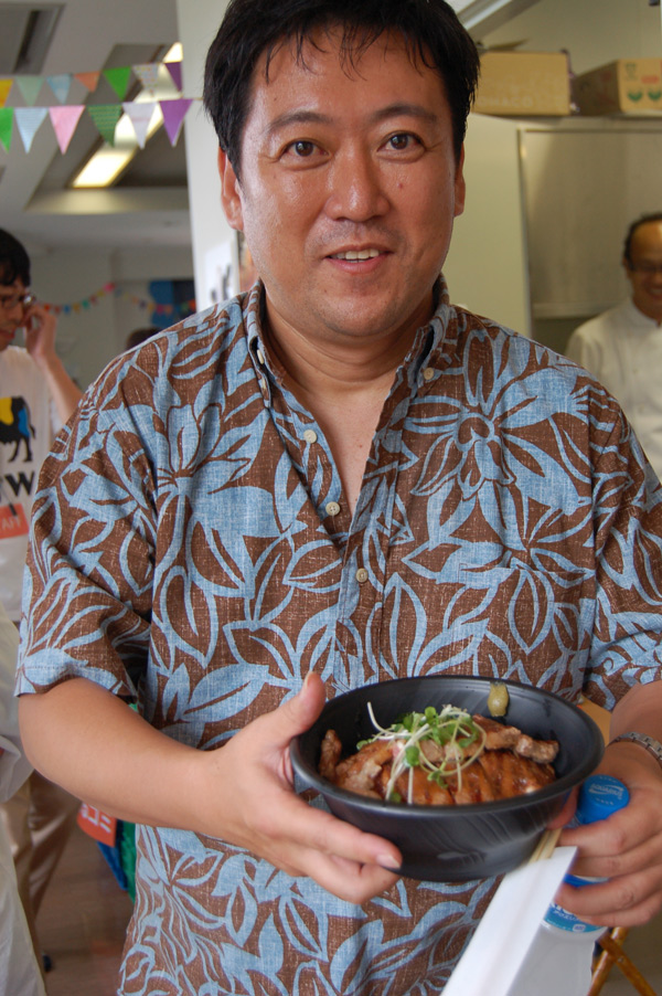 ステーキ丼!食べる気まんまん、嬉しそうな斉藤祐介プロデューサー。