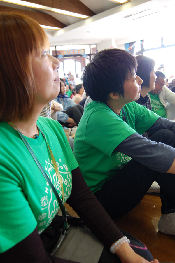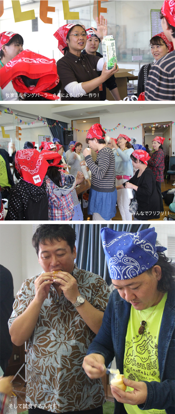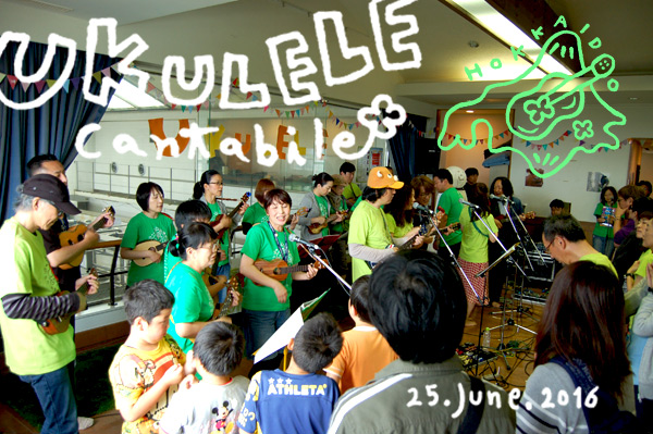 2016年6月25日、牧家ミルキングパーラー(伊達市)で 第3回目となる「北海道ウクレレカンタービレ」が開催されました。 毎年、天候との戦いとなっているこのイベント。手作りの着ぐるみ、てるてる坊主の「テルてる君」も登場する中、またしても雨と強風の一日。 主催者挨拶で木元早苗さんは言い放ちます。 「雨です! 雨なんです。晴れるように願うと雨になるので、雨のつもりでやれば晴れるんだと思います!」 主催者、出演者ともに、悪天候を笑いのネタにしつつ、牧家ミルキングパーラー2階を会場として、楽しく熱い開催となりました。