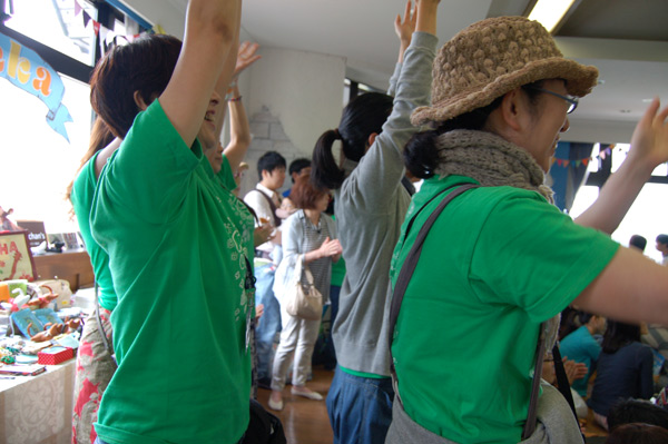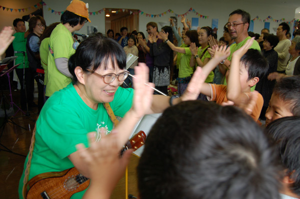 お客さんも参加させてくれる勝誠二さんの楽しいライヴ! みんなで立ちあがってジャンプ! そろそろイベントも終わりに近づいてきました。