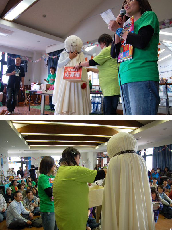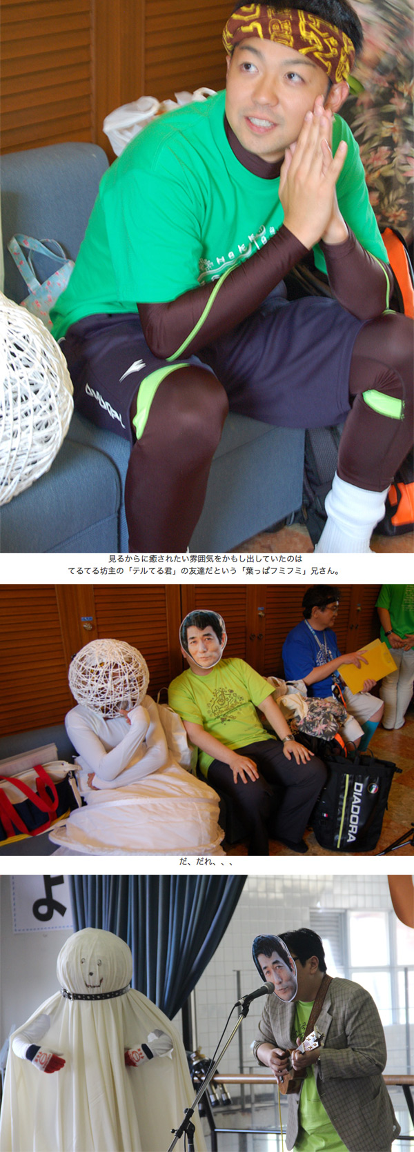 毎年、天候との戦いとなっているこのイベント。手作りの着ぐるみ、てるてる坊主の「テルてる君」も登場する中、またしても雨と強風の一日。