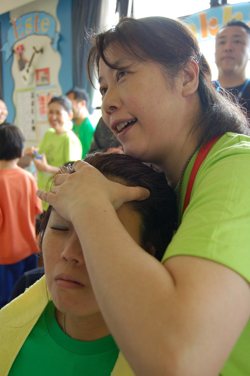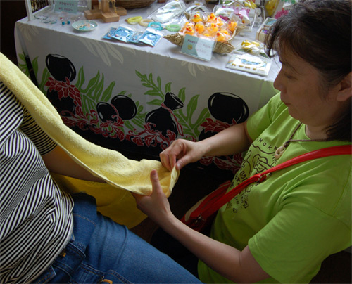 ロミロミさん、リボンレイ制作者のヒルヒルさんにもマッサージ。